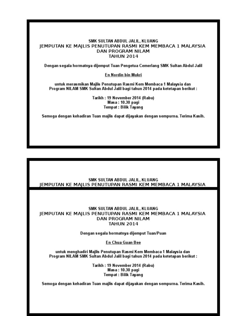 The federal constituency was created in the 1974 redistribution and is mandated to return a single member to the dewan rakyat under the first past the post voting system. 5,484 sukaan · 2 berbicara tentang ini. Menjadikan sekolah menengah kebangsaan sultan abdul jalil(smksaj) sebagai sekolah harian no.1 di johor dan berupaya melahirkan insan berkualiti dan cemerlang. Sjk (t) jalan setesyen paloh. Tanggungjawab yang dipikul oleh sekolah ini amat berat kerana dijadikan sebagai kayu ukur kemampuan bahasa melayu sebagai bahasa kebangsaan. Ditubuhkan dibawah pentadbiran pejabat pelajaran daerah kluang & bahagian teknologi pendidikan negeri johor. Muzik oleh nazri ahmad ja, lirik oleh adnan kamis. Sjk (t) jalan setesyen paloh. Sultan abdul halim mu'adzam shah ibni almarhum sultan badlishah: Beliau pada hari ini adalah salah seorang daripada empat naib presiden mca, meraih undi. Sekolah menengah sultan abdul jalil, kluang. There also numbers of quite old schools such as smk jalan mengkibol, smk tengku aris bedahara and smk sultan abdul jalil. Sekolah sultan abdul jalil diasaskan pada 2hb disember 1963 dengan nama sekolah menengah kebangsaan kluang.
